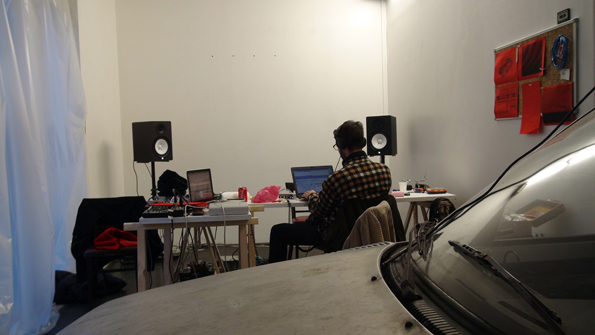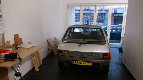 Le temps du workshop, le véhicule a investi l’espace même de la galerie, le transformant à la fois en garage, studio d’enregistrement et lieu de partage. En jouant ainsi de la perturbation des repères, ce geste corrobore le projet architectural des FREAKS Freearchitects qui, avec la vitrine de la galerie s’ouvrant intégralement sur la rue comme avec l’asphalte du sol, interroge les limites entre sphère publique et sphère privée.